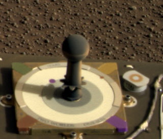 But the colors in the corners of this sundial in the base of the photo from looks quite a bit different on earth than on the landscape photo. There is a lack of blue in the Mars photo, or maybe even a translation of blue to red. There's probably a good reason for this, since NASA has better software and spent more time on it.