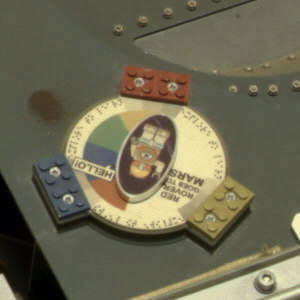 It looks to me like NASA included filter 2, infrared light, in their red color composition. In this image with filter 2, you can see how bright the lower right color tab is: