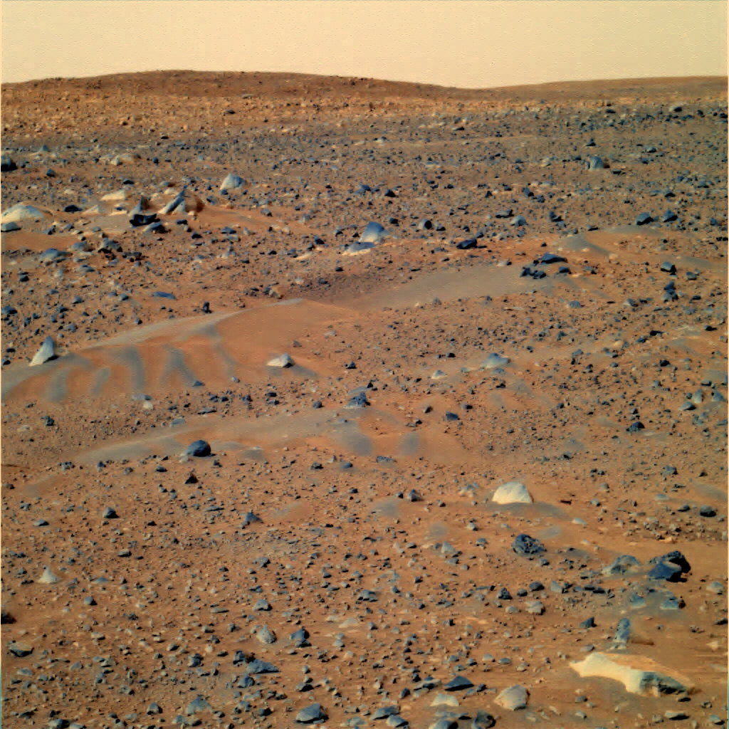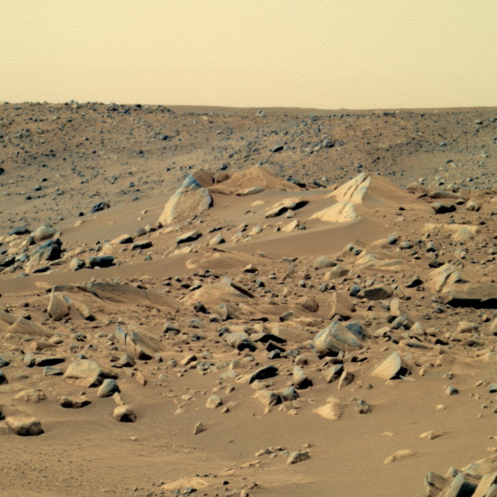 I was browsing the NASA web site for photos from the Mars rovers, but most of them are black and white. Then I noticed they have the raw images posted that can be combined into color photos, so I combined a bunch of them into "living color." Here they are: