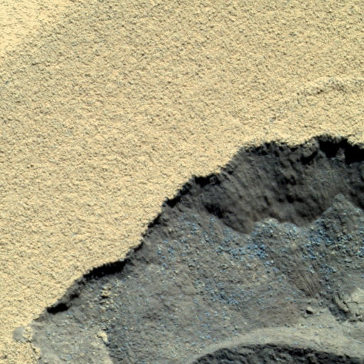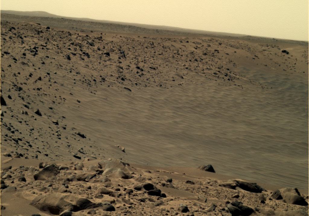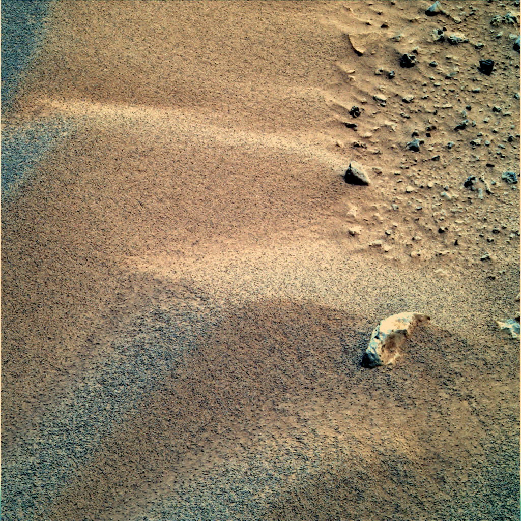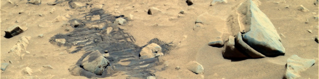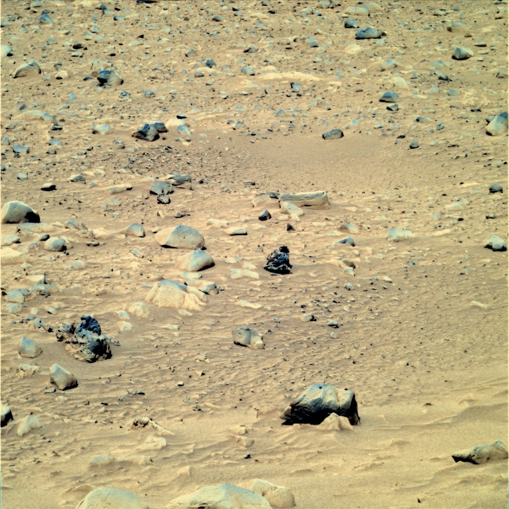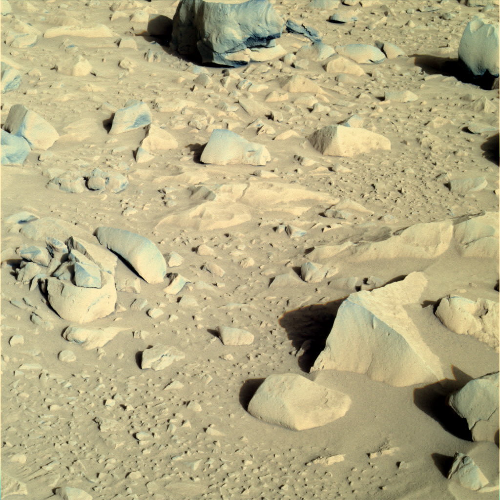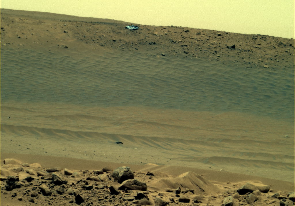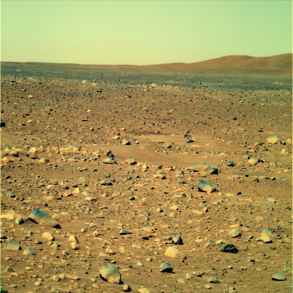 Everything gets kind of fuzzy from this point on. The visible light bandwidths are not even sharply delimited. The bandwidths in the Martian cameras don't necessarily match the color bandwidths on Earthling computers. In a lot of the images some of the bandwidths are missing. For example, this image: