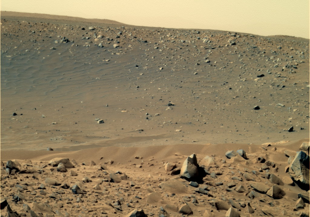 Some of the NASA pictures show mainly red on Mars, such as this panorama: