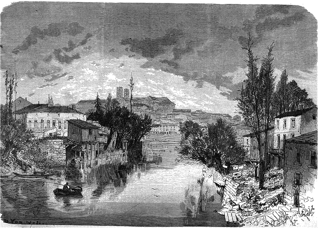 Puis le signal donné, les soldats défilèrent devant l'état-major, passant à côté de la citadelle, sombre et vaste monument qui plonge sur tous les environs et que le bombardement a en partie détruit. Rien de plus grand que l'aspect de cette massive forteresse, de ces ruines qui attestent l'acharnement de l'ennemi et l'énergie de la défense.