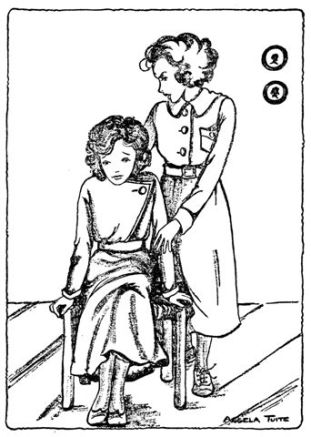 "As true as you live, I don't believe these shoes will ever be dry by school time. S'posing we have to go barefooted, and this the last day of the term! Cherry, you've got too many columbines in that horn. They look pinched. Put some in Allee's boat."