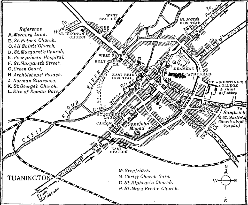 PLAN OF CANTERBURY, SHOWING THE CHIEF STREETS AND THE MOST INTERESTING BUILDINGS