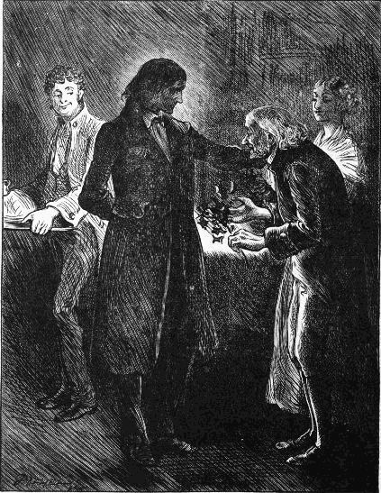 suddenly forcing the unfortunate Trott back into his chair, and brandishing