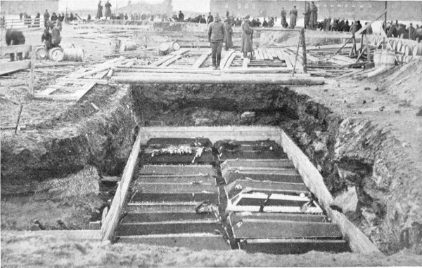The Stavka Quartermaster-General’s Branch. Standing on the pathway, from left to right (centre): Generals Denikin (Chief of Staff), Alexeiev (Supreme C.-in-C.), Josephovitch and Markov (first and second Quartermasters-General).