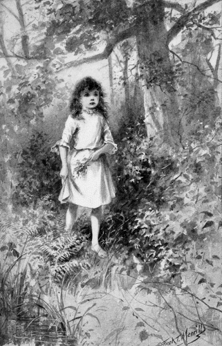 She was a brave child; she was hungry, and her legs and feet ached; but she pushed on cheerfully, sometimes talking and singing, sometimes silent, making her way through the tangle of ferns and hanging branches; following the brook, because there was a little boy in the newspaper that her papa read, and he got lost, and just he followed the brook, and it brought him right along to where there were people, and he had blackberries all the way. She looked for blackberries, but they are hard to find in early May, except in the Fairy Books. There, as the child knew very well, you had only to go to the right place and take a broom and brush away the snow, and there you found strawberries, the finest that ever were seen, to take home to your sick sister. It was true that you had to be very good and polite to the proper old woman, or else you would never find the strawberries; but the child would be polite, she truly would. She would sweep the old woman's house, and give her half her own bread—only she had no bread! Here a great pang of emptiness smote the child; she felt that there was a sob about somewhere, waiting to get into her throat. It should not come in; she shook her head, and pressed on. It was all right; God was close by, anyhow, and he had to take care of children, because he said he would. So it was all right, only—