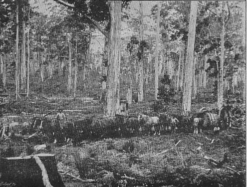 As a fact, this mining camp (now known as the town of Goongarr) is only sixty odd miles from the capital, measured by survey, but in early days, distances were reckoned by rate of travel, and roads and tracks twisted and turned in a most distressing manner, sometimes deviating for water, but more often because the first maker of the track had been riding along carelessly, every now and then turning sharp back to his proper course. Subsequent horse or camel men, having only a vague knowledge of the direction of their destination, would be bound to follow the first tracks; after these would come light buggies, spring-carts, drays, and heavy waggons, until finally a deeply rutted and well-worn serpentine road through the forest or scrub was formed, to be straightened in course of time, as observant travellers cut off corners, and later by Government surveyors and road-makers.