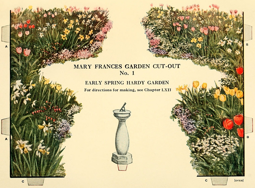 Everything else in the Mary Frances stories had[vi] to do with indoors: in cooking, feeding the body; in sewing, clothing the body; in housekeeping, sheltering the body. In gardening, which took them out-of-doors, the children had so much fun and had so much to learn, that the whole story cannot be put down here—you must finish it out for yourselves in your own gardens.