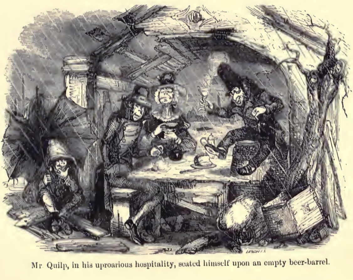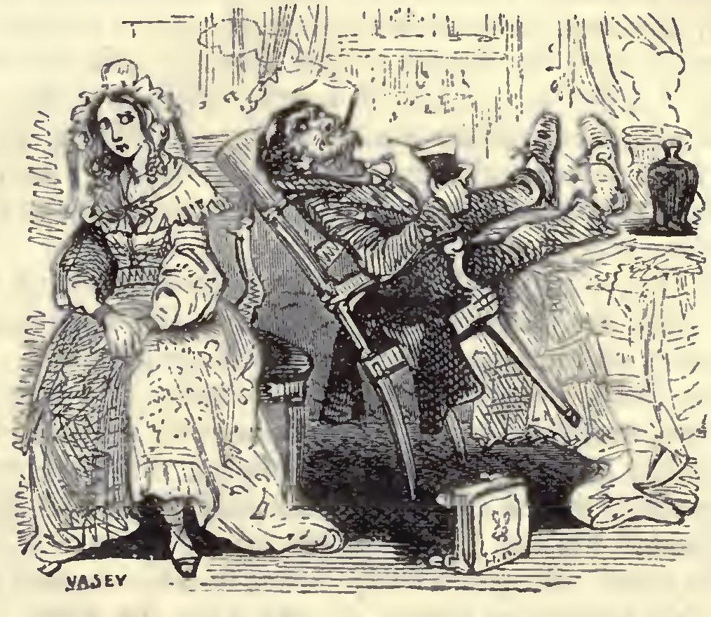 Once more opening his mouth and shutting his eyes, and laughing like a stentor, Kit gradually backed to the door, and roared himself out.