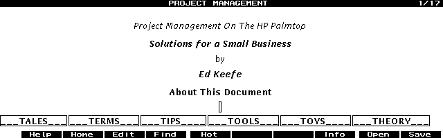 The opening screen the HTML viewer HV, showing the first page of an HTML document titled Project Management on The HP Palmtop.