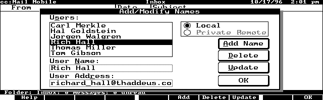 2. I have to update my Address Book manually. When you compose a cc:Mail