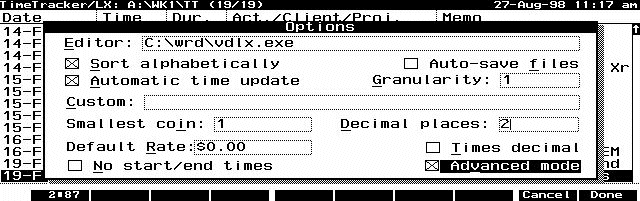 Screen 5: TIMETRACKER/LX Options Let You Pick An Editor.
