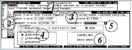 6 The region labeled "6" shows another use of Label fields and Group boxes.