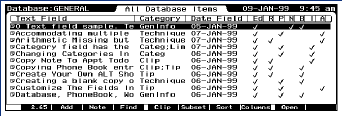 2. contain all known tips and techniques about the Palmtop's database applications.