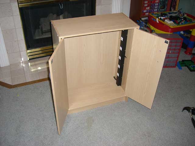 - Following the instructions for your cabinet, carefully assemble it. Remember, the side with the power strip attached will be off balance and harder to hold in place. Getting a friend to help is a good idea, or a few dead trees you have laying around the house. Dictionary and Encyclopedia Dead Trees are good choices.