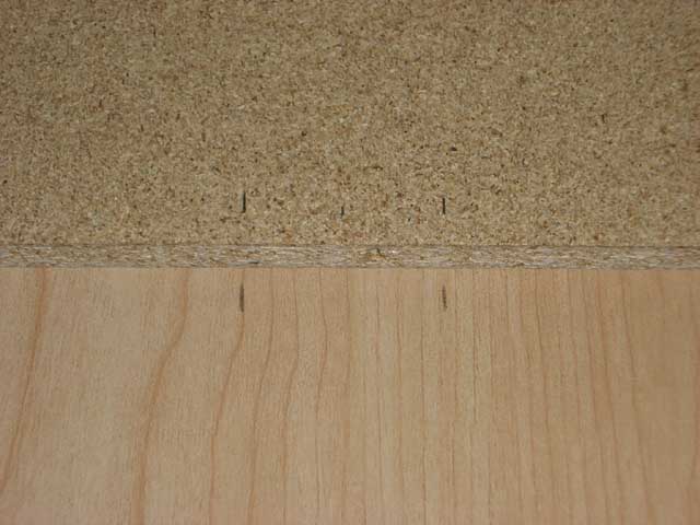 - Trim away any splintered pressed wood from the end of the notch where it wasn't actually cut. The scoring on the top and bottom of the shelf should have resulted in a nice clean edge in those areas. The center doesn't matter, so we just clean it up and leave it at that.