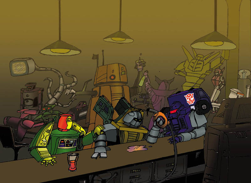 1. "Bar Room" - It's Brawn, Cosmos and Pipes havin a cool one at a local bar. I'm trying to put together a fan comic in my spare time, and this will be part of it. Let me know what you think. (81k, 8-28-00)