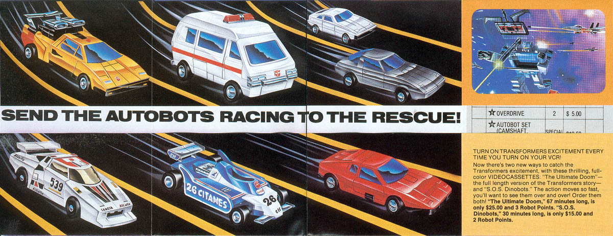S.T.A.R.S. #2This one sells the STARS club, as well as the Omnibots, Sunstreaker, Wheeljack, Reflector, Thundercracker, Ratchet, and Mirage, as well as a couple TF video tapes. Approximate dimensions are 5-1/2" by 15" when fully opened. |