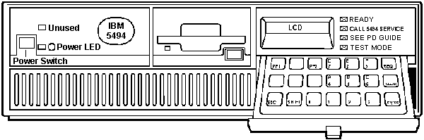 side of the 5494 and consists of a keypad, an LCD, and four LEDs (Ready,