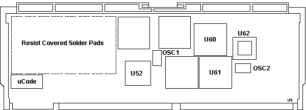This puppy has the same layout as the 4MB 08F3369, but the upper left is only solder pads for the little metal cans. The solder pads are for the pins from the memory cubes.