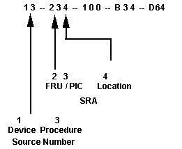 The three digit groups make up the SRA numbers. The left two digits of the SRA number is the FRU / PIC code (23 in the example). The right digit of the SRA number is the location number.