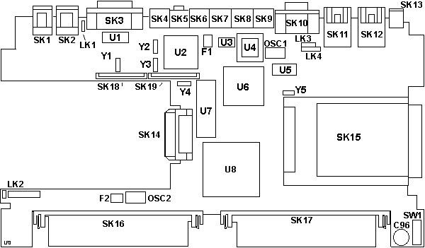..used the Machio/Slavio chipset for SCSI (fast-narrow, 8 bit), Ethernet (10base-T or AUI), serial and parallel ports, controlling the Boot PROM and NVRAM/hostid chip, and a bunch of other stuff.  Part numbers for these chips were STP2000QFP (Machio) STP2001QFP (Slavio), aka NCR89C100 / NCR89C105. Performance is for all intents and purposes identical on all systems using the chipset, as far as I have ever been able to tell. SCA connectors for the SS20 was purely a physical interface issue, and in no way utilized the 16-bit interface on the drives, as the bus and controllers were 8-bit.