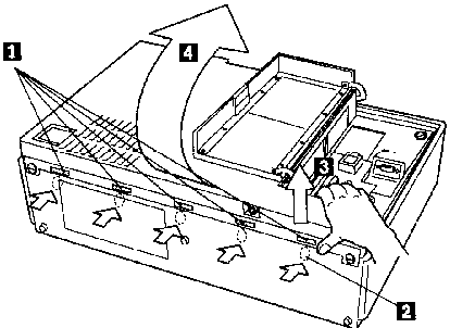 catches, one to each side of the carrying handle.When you lift up the rear