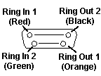 Ring Out 1 (3 RJ) - (9 SUB) - orange Ring In 1 (5 RJ) - (1 SUB) - red Ring Out 2 (6 RJ) - (5 SUB) - black Ring In 2 (4 RJ) - (6 SUB) - green Pins 2,4, 7 and 8 are "DC Common" and Pin 3 is +5VDC on most