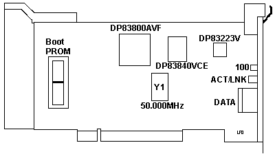 DP83800 controller chip. Has an ISA style interface, no DMA, just