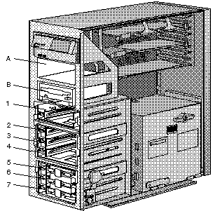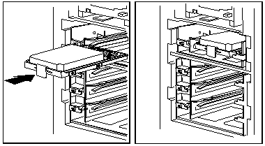 1. Find the bay in which you plan to install the drive assembly. If a drive assembly is already installed in the bay you plan to use, remove the drive assembly as described in steps 3 and 4 of Removing Internal Drives. Note: The figures that accompany these steps show the installation occurring in bay 1. These instructions also apply to bays 2 through 7. 2. Prepare the bay for installation of
