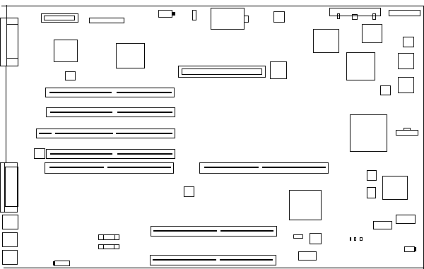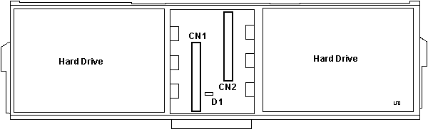 into the planar, and two standard SCSI narrow connectors (CN1, CN2) are