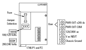 The terminals on the 1746-P1 and -P2 provide an isolated, nonfused 200