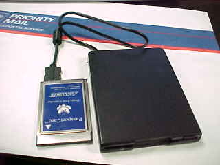 The Travel Floppy can be connected to virtually any DOS, Win3.x/95/98/ME, 2000 and NT 4.0 compatible notebook, subnotebook, or palmtop by simply inserting Accurite's custom floppy disk controller, the PassportCard™. The PassportCard is a PCMCIA Type II form-factor card meeting release 2 of the PCMCIA standard. The PassportCard features data transfer rates up to 1 Mbps and meets the PCMCIA release 2.10 specification with a Type II physical format. Software drivers provided with the PassportCard allow full support of standard IBM type flexible disk drive and diskette format configurations including 3.5" 720K, 1.44 Mb and 2.88Mb, as well as 5.25" 360K and 1.2 Mb. To be able to boot off a floppy, you will need an accurite tavel