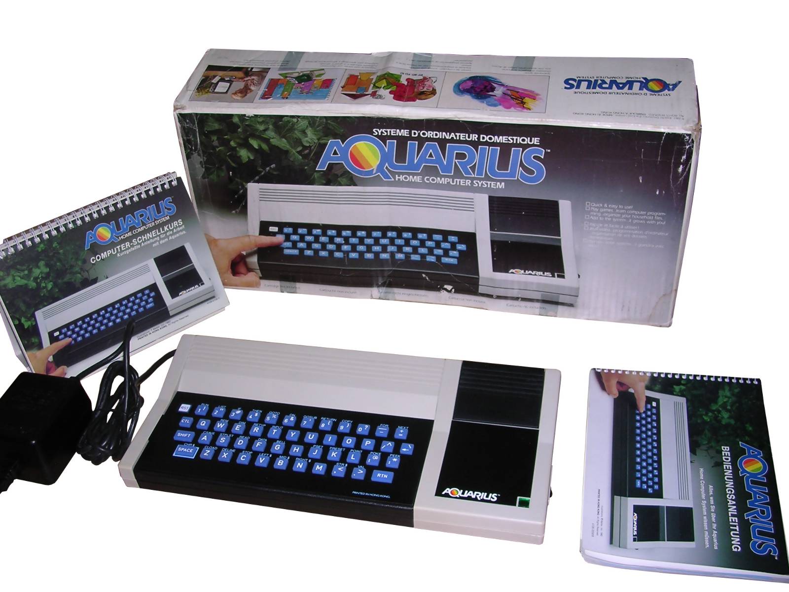 This is the first Aquarius model released shortly after Mattel passed it to Radofin, probably for German market. It has a Z80 running at 3.5MHz, 4kB of RAM and built-in TV modulator. Its small keyboard is not very comfortable but usable, and graphics capabilities are, for that time, below average (80x72 in 16 colors). Although most games were released on cartridges, it has tape recorder connector.