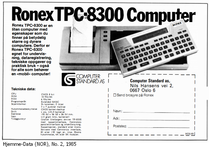 This machine has been sold as Sanco TPC-8300 in France and probably in Germany (According to this page, Sanco was French Sanyo's distributor and one more company), and as Ronex in Sweden and Norway (see the advertisement). Ronex unit is the same as Sanco, it has only different brand. Another rebranding was in Switzerland, where it was sold as Migros M-Office HHC2000.
