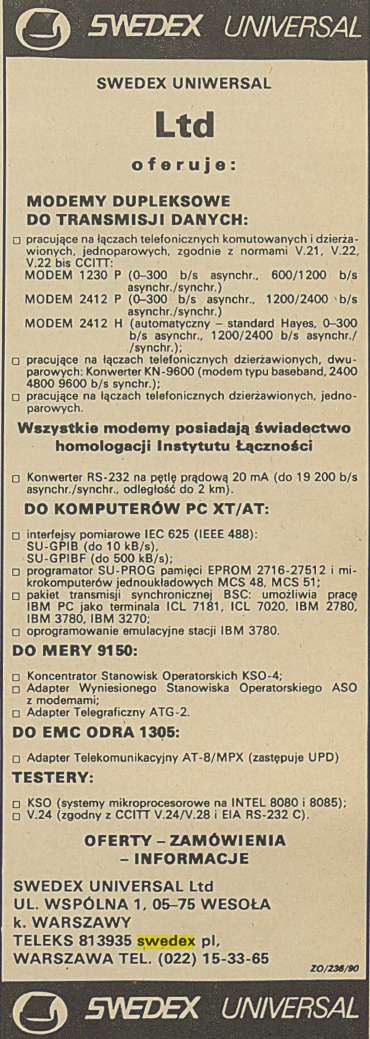 UPDATE: In a journal "INFORMATYKA" from 1990 I found the following advertisement of Swedex-Universal. I'll translate the important part: