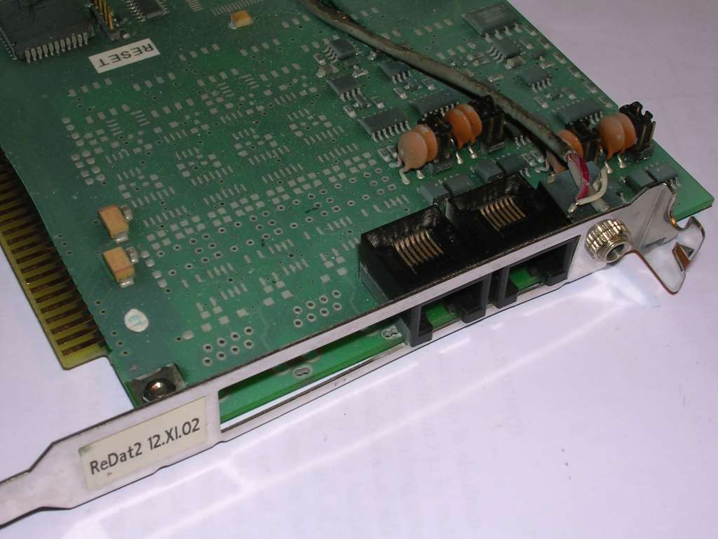 This particular board is probably from 2002, made by Czech company Redat. It was used to record 2 input phone lines to dispatch system - all calls at once. However, there were versions of this board for 4 lines too.