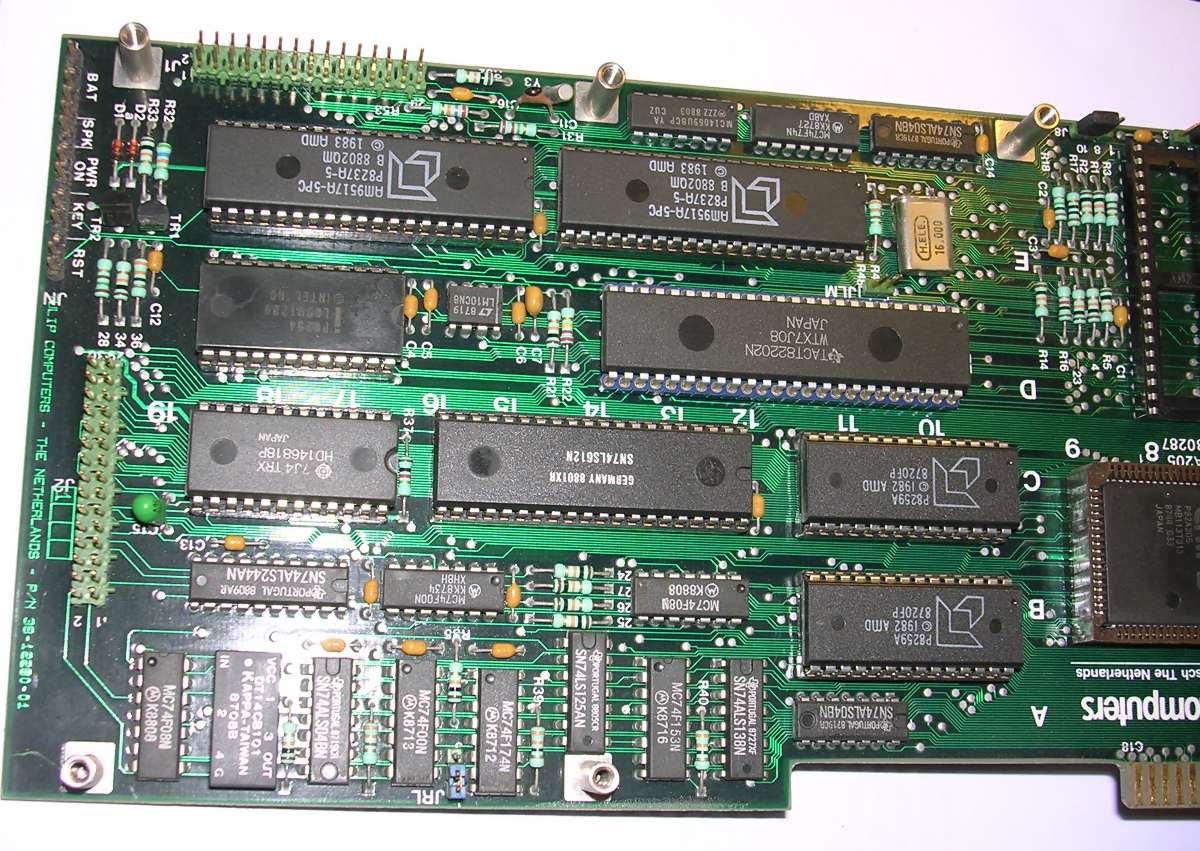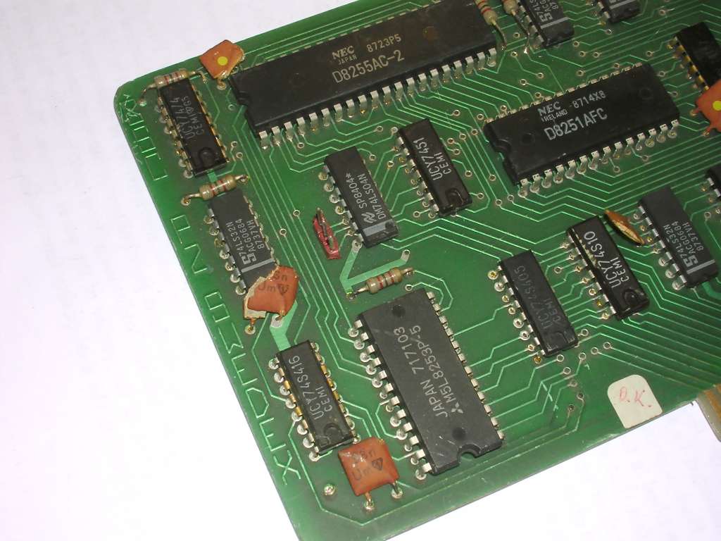 The technology which was used to make this board is not advanced - it rather looks like a prototype. There are numerous connections made with wires on both sides of board, some chips are skipped and "patched" with wires. The board has not been washed after soldering and the soldering looks like it was done by hand.