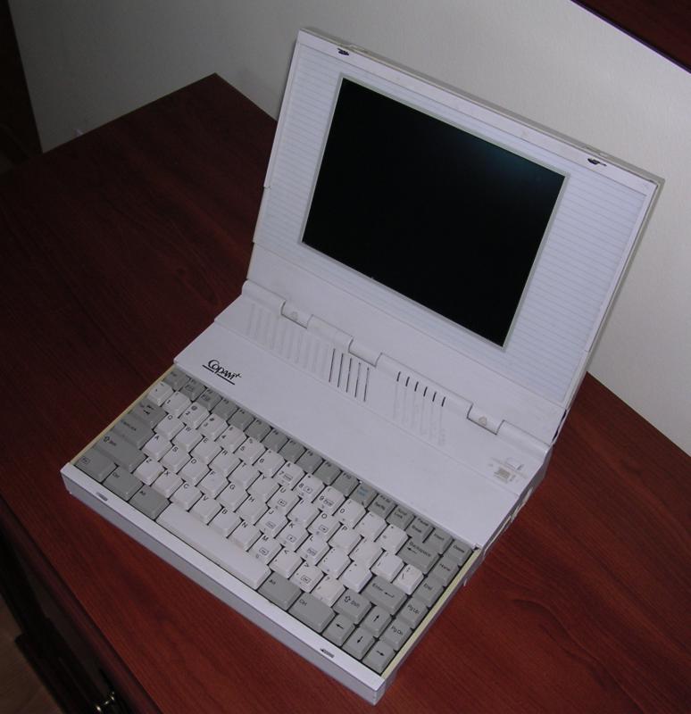 Quite rare notebook with 386 processor. It is made with average quality components (LCD seems to be good qualioty) and has compact look. Copam was Taiwanese computer manufacturer which made some Z80 systems, desktop PCs and some laptops. It was not known much in Europe. BIOS of this laptop is made by Quadtel and is universal, it allows to set color or monochrome display and some other expansions not available in this computer.