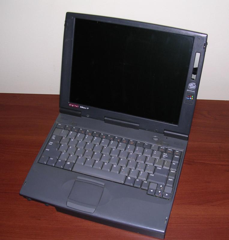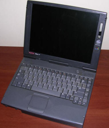 Another PC notebook from DEC, this unit has Pentium 133MHz processor and 8MB On-board RAM expandable with SIMMs up to 40MB (although 16MB SIMMs of this type were quite rare). It's typical construction of mid-90s with modular technology and replaceable drive bay.