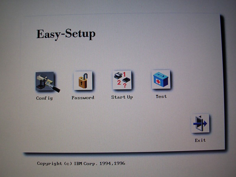 PowerPC-based ThinkPads had better GUI-driven Setup application called "Easy setup". This application is built into ROM. And if you played computer games with key combination cheats, and you had fun discovering them, this setup is full of these! There are hidden options, some destructive, some not, advanced tests, and even a hidden command prompt! Here I'll show some basic hidden moves not covered in manuals.