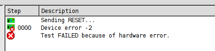 - Test failed on pins 6 and 9. Error in pin 9 is marked "!!!", which means that it failed the test.