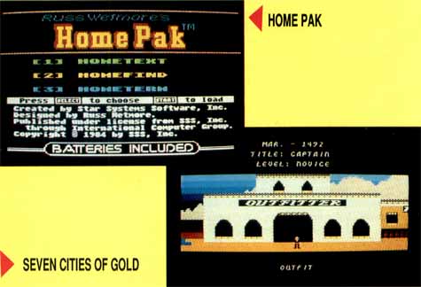 Electronic Arts distributes another original Batteries Included product that may be one of the best 8-bit software values around. Called HomePak, it is three programs in one: a word processor, terminal program and database. HomeText is an excellent entry-level word processor, but does not have the dozens of features contained in PaperClip. HomeTerm is one of the best terminal programs for the 8-bit computers. HomeFind is an electronic filing system.