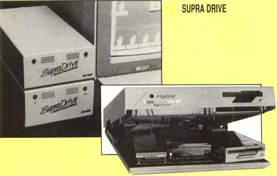 Supra drives range in size from 20 megabytes to 60 megabytes. They are about the size of a shoe box and feature a 19-inch cable that connects to the DMA port on the ST. In addition, all Supra drives come with a boot program, a utility for mapping bad sectors and a formatting program. The drives are available from either the factory or retailers. The Supra 20-, 30-, 45- and 60-megabyte drives sell for $700, $795, $995 and $1,295, respectively.