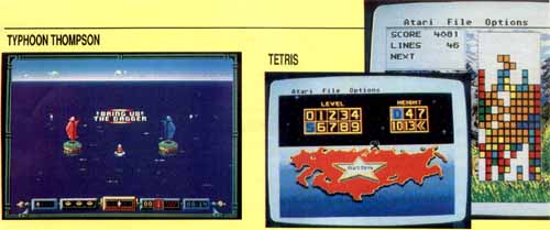 games of all time: Tetris.Tetris is a puzzle game with a simple concept. You rotate and position into a solid row at the bottom of the screen variousshaped blocks that fall from the top. Points are awarded as each solid row is formed then disappears. As gaps are left within a row, the rows build up line by line until they reach the top of the screen. When there is no more room for blocks to fall, the game is over. You can either let the pieces fall at their own speed or drop them yourself for more points. Tetris is a Soviet-designed game and offers nine levels of addictive play. At each higher level, the pieces fall at an increasingly faster rate and there is a different background screen. Also, you can begin the game with varying numbers of pieces already on the screen for an even greater challenge. Other features include turning the sound effects on or off, displaying statistics on your progress and previewing the next piece that will fall. Tetris sells for $40. If you are going to buy one ST game this year, Tetris should be it.