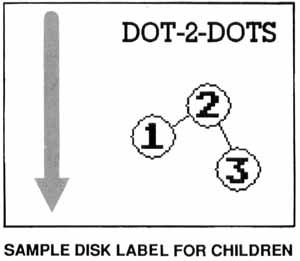 The director of my youngest's preschool had asked for picture labels with large-type titles and arrows indicating the proper position of the disk when inserting it into the drive. I used a paint program to draw icons for the pictures and then loaded them into a desktop-publishing program to add the title and arrow. It would also be possible to use a paint program such as DEGAS for the entire process. The resulting labels were printed out on an 8½ "x11" sheet (with several labels to a page). I then took the sheet to a copy shop where it was duplicated on sticker-backed paper. The labels were then cut out and mounted on the classroom's disks. While the ink from labels printed on a printer sometimes will smear, copier "ink" normally does not, so the resulting labels are hardy, even in the hands of children.