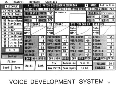 Using eight edit buffers, the user may edit, randomize and mix patches. Patches may also be swapped between libraries and banks. All the program's functions may be accessed with the mouse or from the keyboard. The K1-VDS sells for $89.