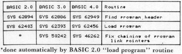One other difference is that on BASIC 3.0 & 4.0 machines, it is necessary to reset the pointers for variable storage to the new end-of-program. This fix, too, was done by the "Load program" routine on BASIC 2.0 machines.