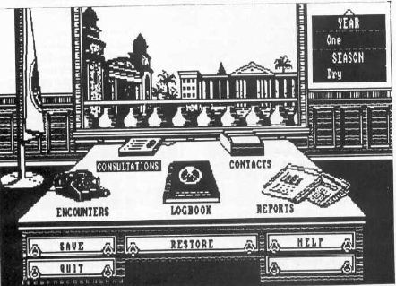 The third problem is more serious still. When I wanted to go back to a previous screen, I thought the logical step was to press the escape key. It wasn't. Hidden Agenda jumped me all the way back to DOS, and I lost all the time I had put into the game. I wish there had been the familiar Are you sure you want to quit (Y/N)? prompt.